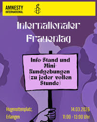 Karte des Veranstaltungsorts Termine an diesem Ort Internationaler Frauentag 2026 Datum14. März 2026 11:00 – 13:00 Uhr Hugenottenplatz Erlangen